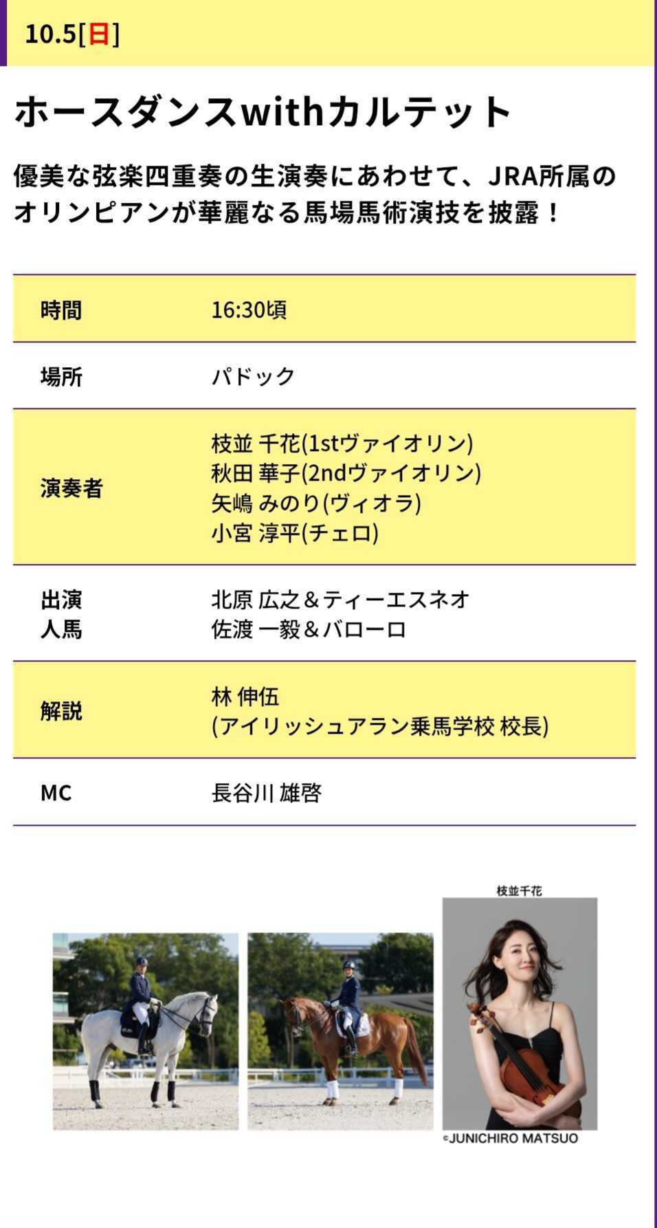 10月5日(日)、京都競馬場の最終レース終了後、パドックにて『ホースダンスwithカルテット』が行われます。