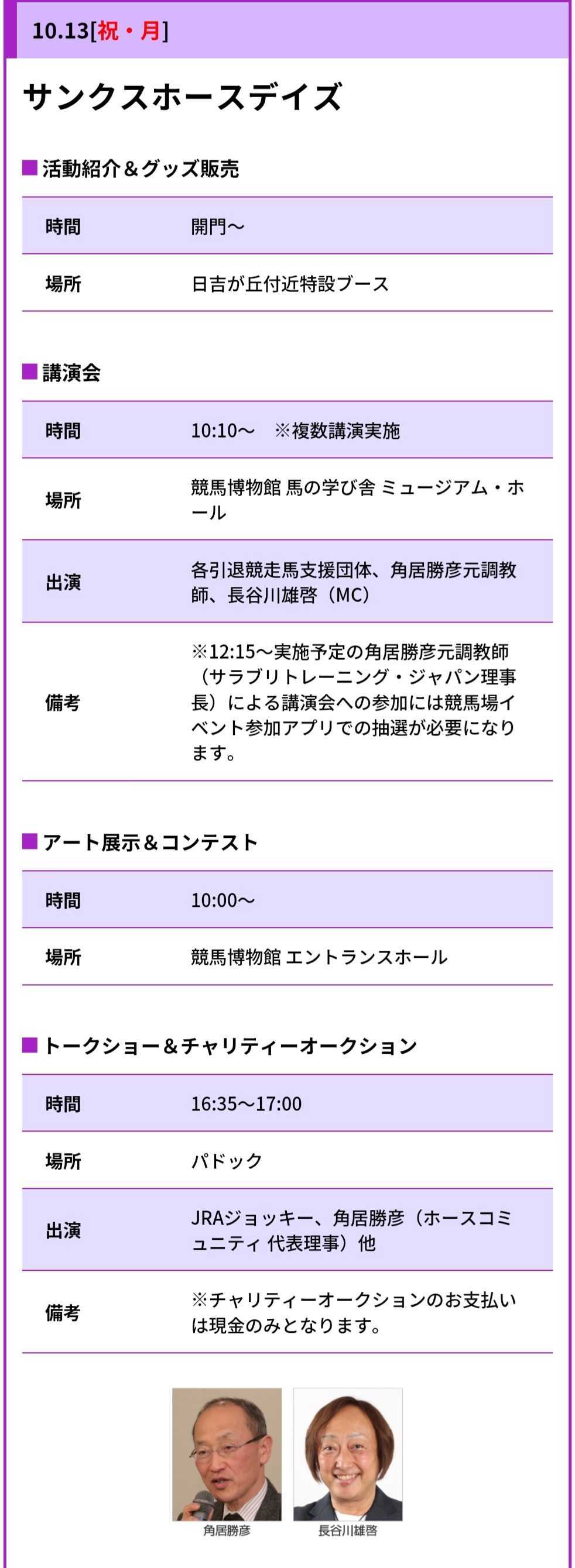 10月13日(祝・月)の東京競馬場は、『サンクスホースデイズ』。