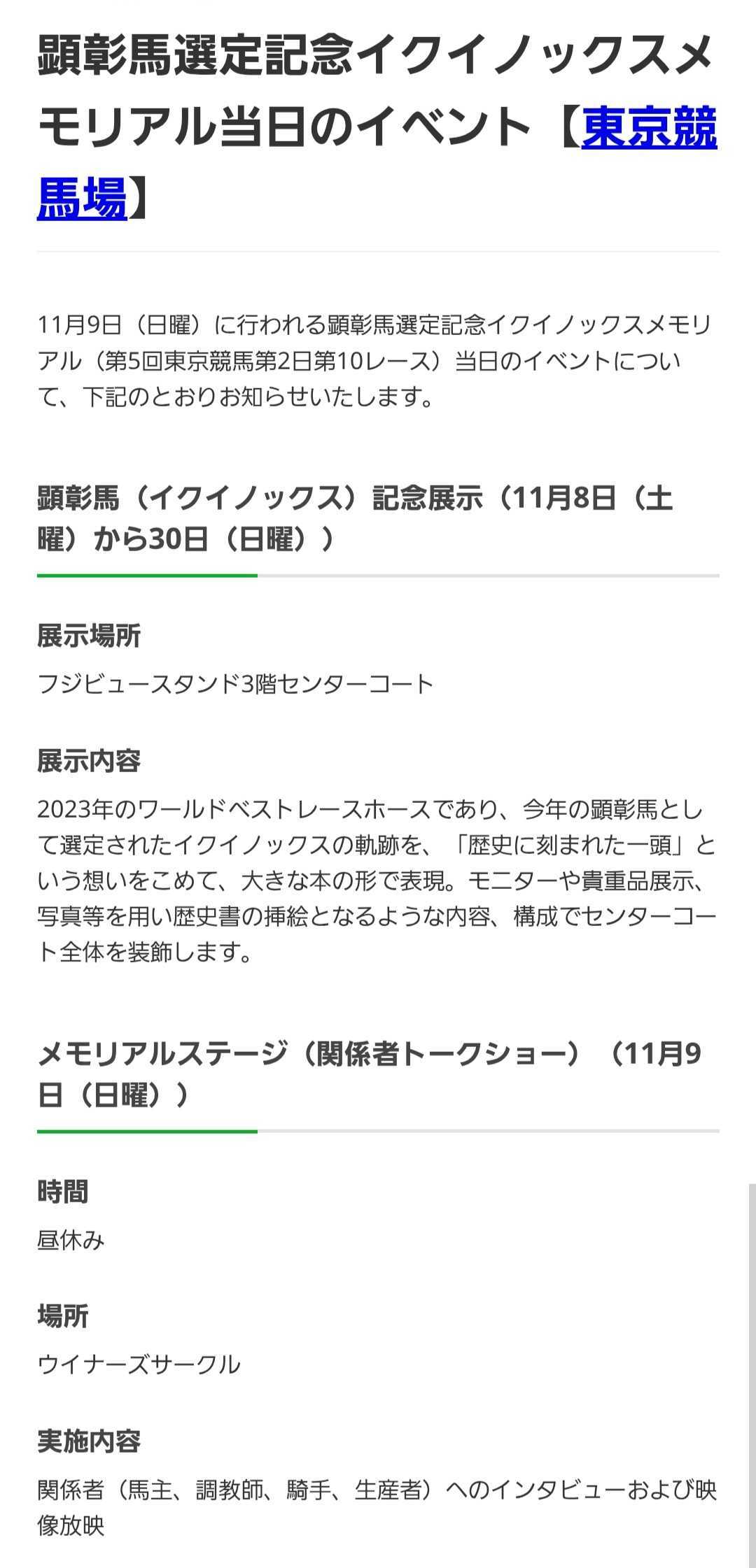 11月7日(日)、東京競馬場のお昼休みに『イクイノックスメモリアルステージ』を行います。